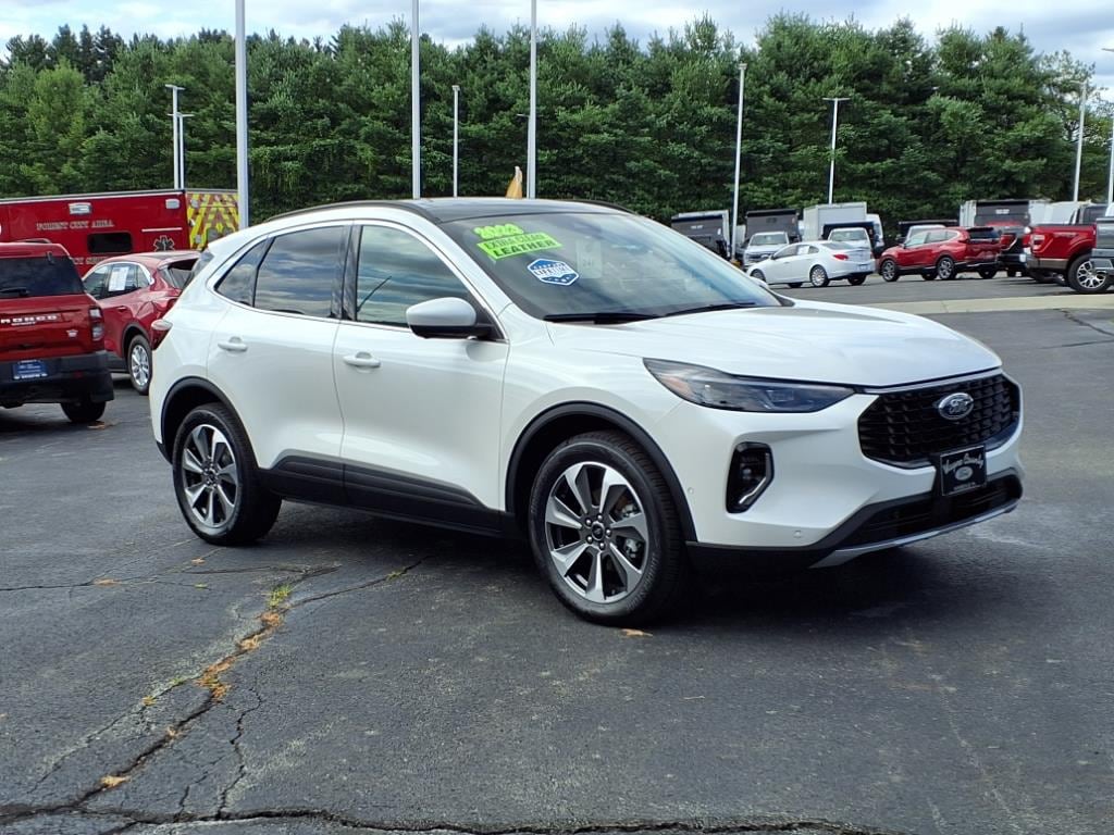 WAYNE COUNTY FORD WE MAKE THE DIFFERENCE. ONE OWNER, FORD CERTIFIED, CLEAN CARFAX, SERVICED AND READY TO DRIVE HOME, NEW TO THE LOT THIS ONE WONT LAST, RARE FIND, 4WD/AWD, REMAINDER OF FACTORY WARRANTY, 42 CITY MPG, KKOIRALA - DE381423 - Adding New Model/Series for Catalog, 4D Sport Utility, 2.5L iVCT, eCVT, AWD, Star White Metallic Tri-Coat, Space Gray Leather, Active Park Assist 2.0, Black Roof-Rack Side Rails, Electronic Fuel Door Release, Equipment Group 600A, HD Radio, Head-Up Display, Heated Leather-Trimmed Front Sport Contour Seats, Navigation system: Connected Navigation, Neutral Towing Capability, Panoramic Vista Roof, Pedestrian Alert Sounder, Premium Technology Package, Radio: B&O Sound System by Bang & Olufsen. Star White Metallic Tri-Coat 2023 Ford Escape Hybrid Platinum AWD eCVT 2.5L iVCT Recent Arrival! 42/36 City/Highway MPG YOU CAN BUY FROM ANYPLACE WHY NOT BUY FROM THE PLACE THAT CARES ABOUT YOU.