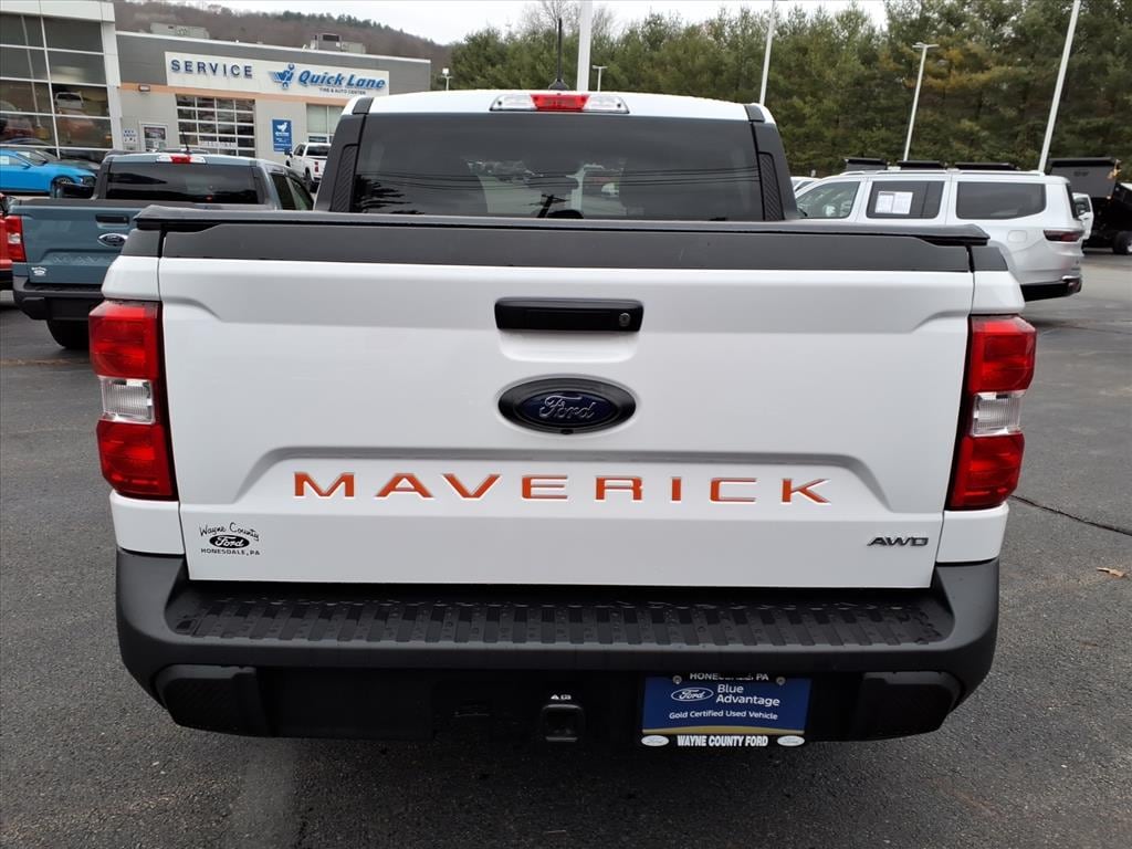 WAYNE COUNTY FORD WE MAKE THE DIFFERENCE. ONE OWNER, FORD CERTIFIED, CLEAN CARFAX, SERVICED AND READY TO DRIVE HOME, LOCAL TRADE IN, NEW TO THE LOT THIS ONE WONT LAST, RARE FIND, WORK HARD PLAY HARDER, 4WD/AWD, REMAINDER OF FACTORY WARRANTY, 28 HWY MPG, Maverick XLT, 4D Crew Cab, EcoBoost 2.0L I4 GTDi DOHC Turbocharged VCT, 8-Speed Automatic, AWD, Oxford White, Navy Pier/Medium Slate, 400W Inverter w/USB Console Rear, BLIS Blind Spot Info System w/Cross-Traffic Alert, Ford Co-Pilot360, Heated Mirror w/Body-Color Skull Caps, Heated Seats, Lane-Keeping System, LED Box Lighting, Soft Vinyl Wrapped Heated Steering Wheel, Trailer Hitch Receiver w/4-Pin Connector, Windshield Wiper De-Icer, XLT Luxury Package. Oxford White 2023 Ford Maverick XLT AWD 8-Speed Automatic EcoBoost 2.0L I4 GTDi DOHC Turbocharged VCT 22/28 City/Highway MPG Ford Blue Certified Details: * and 11,000 FordPass Rewards Points to use toward first maintenance visit * Roadside Assistance * 139 Point Inspection * Limited Warranty: 3 Month/4,000 Mile (whichever comes first) after new car warranty expires or from certified purchase date * Vehicle History * Transferable Warranty * Warranty Deductible: $100 YOU CAN BUY FROM ANYPLACE WHY NOT BUY FROM THE PLACE THAT CARES ABOUT YOU.
