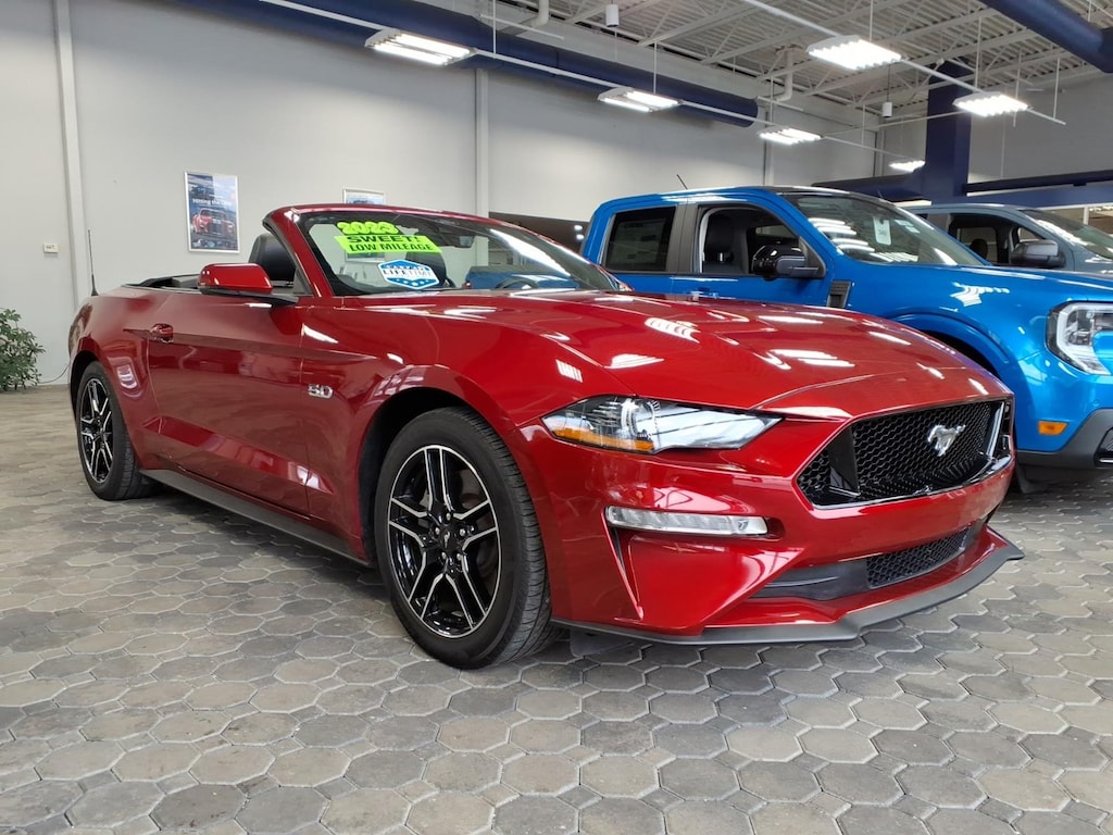 WAYNE COUNTY FORD WE MAKE THE DIFFERENCE. ONE OWNER, FORD CERTIFIED, SERVICED AND READY TO DRIVE HOME, LOCAL TRADE IN, NEW TO THE LOT THIS ONE WONT LAST, RARE FIND, REMAINDER OF FACTORY WARRANTY, 23 HWY MPG, Mustang GT Premium, 2D Convertible, 5.0L V8 Ti-VCT, 10-Speed Automatic, RWD, Rapid Red Metallic Tinted Clearcoat, Ebony w/Leather-Trimmed Bucket Seats, 12LCD Digital Instrument Cluster w/MyColor, Active Valve Performance Exhaust, Adaptive Cruise Control, Equipment Group 401A, Ford Safe & Smart Package, Heated Steering Wheel, Integrated Turn Signals, Leather-Trimmed Bucket Seats w/Color Accents, Memory Driver Seat, Mirrors & Ambient Lighting, Voice-Activated Touch-Screen Navigation System. Rapid Red Metallic Tinted Clearcoat 2023 Ford Mustang GT Premium RWD 10-Speed Automatic 5.0L V8 Ti-VCT Recent Arrival! YOU CAN BUY FROM ANYPLACE WHY NOT BUY FROM THE PLACE THAT CARES ABOUT YOU.
