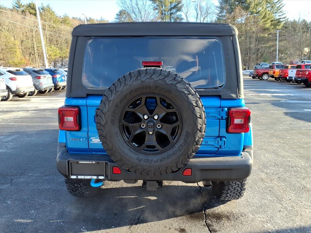 WAYNE COUNTY FORD WE MAKE THE DIFFERENCE. ONE OWNER, CLEAN CARFAX, SERVICED AND READY TO DRIVE HOME, NEW TO THE LOT THIS ONE WONT LAST, RARE FIND, 4WD/AWD, REMAINDER OF FACTORY WARRANTY, 22 HWY MPG, 4D Sport Utility, 2.0L I4 DOHC, 8-Speed Automatic, 4WD, Hydro Blue Pearl Coat, Red/Black Leather, #1 Seat Foam Cushion, 20th Anniversary Rubicon 4xe Suspension, 7 & 4 Pin Wiring Harness, 700 Amp Maintenance Free Battery, ABS brakes, Alloy wheels, Auxiliary Switches, Class II Receiver Hitch, Compass, Corning Gorilla Glass, Electronic Stability Control, Front dual zone A/C, Heated door mirrors, Illuminated entry, Integrated Off-Road Camera, Leather Wrapped Park Brake Handle, Leather Wrapped Shift Knob, Low tire pressure warning, MOPAR 3 Bar Bumper Hoop, MOPAR All-Weather Floor Mats, MOPAR Rubicon 20th Anniversary Tool Kit, Nappa Leather Seats, Navigation System, ParkView Rear Back-Up Camera, Passenger door bin, Premium Door Trim Panel, Premium Wrapped Red I/P Bezels, Quick Order Package 29T Rubicon 20th Anniversary, Red Interior Accents, Red Seat Belt, Remote keyless entry, Rubicon 20th Anniversary, Rubicon 20th Anniversary Grille, Rubicon 20th Anniversary Shifter Medallion, Rubicon 20th Anniversary Side Hood Decal 4xe, Rubicon 20th Anniversary Swing Gate Plaque, Rubicon 20th Anniversary Top Hood Decal 4xe, Steel Bumper Group, Steel Front Bumper, Steel Rear Bumper, Traction control, Trailer Tow & Aux Switch Group, Wheels: 17x 7.5Black Beadlock Capable. Hydro Blue Pearl Coat 2023 Jeep Wrangler Rubicon 20th Anniversary Edition 4xe 4WD 8-Speed Automatic 2.0L I4 DOHC Recent Arrival! YOU CAN BUY FROM ANYPLACE WHY NOT BUY FROM THE PLACE THAT CARES ABOUT YOU.